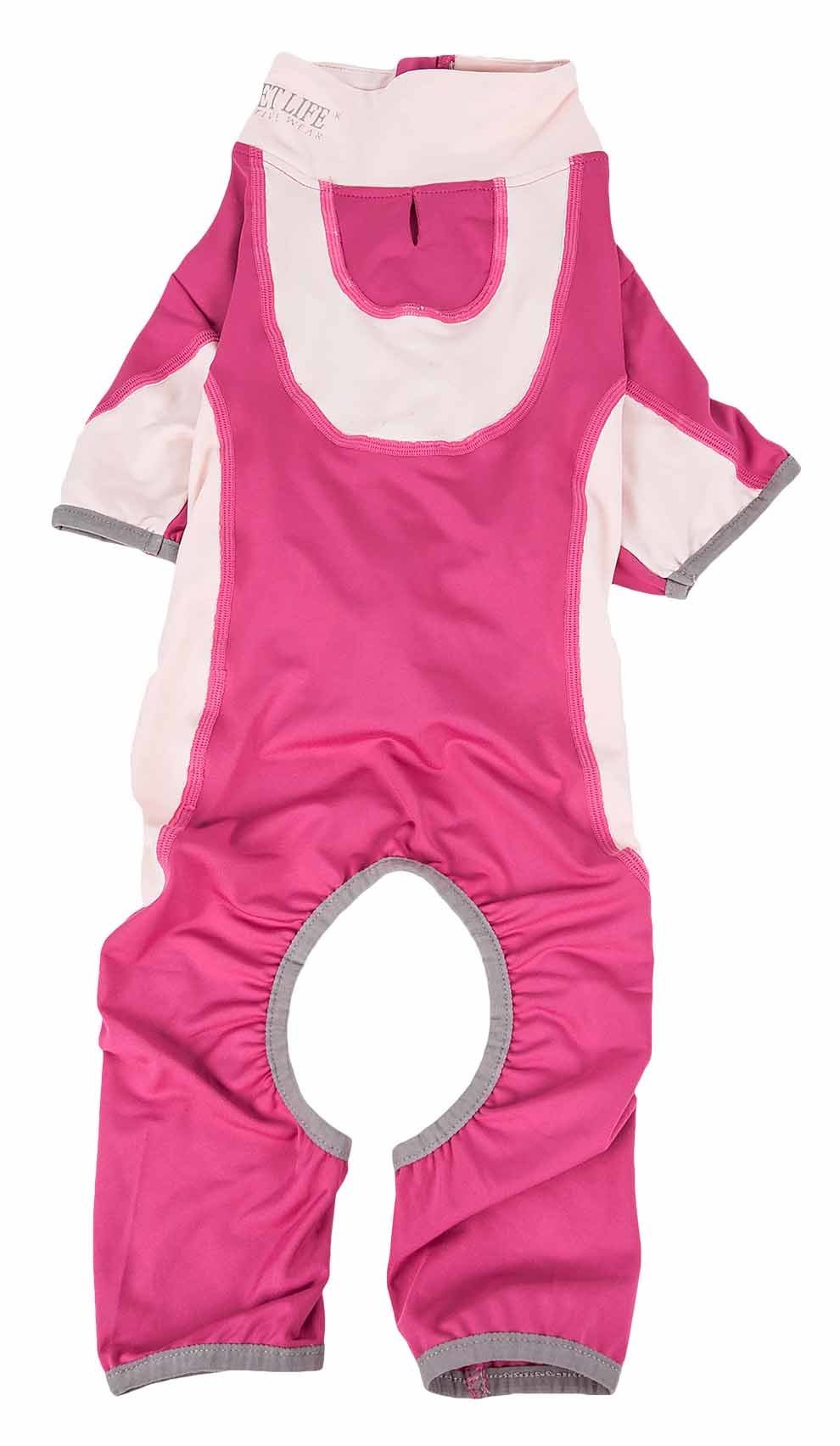 The Pet Life ACTIVE 'Warm-Pup' Dual-Toned Full Bodied Tracksuit is Next-Generation performance unleashed. Features a specially formulated Ultra-Lightweight Micro-knit system that maintains body temperature and features 4-way Stretch technology that moves better in every direction for premium Comfort and Mobility with strategic ventilation points for Breathability. Features a tapered and streamlined fit that's also expandable with stretch-banded lining that extends additional room for growth. This fabric features Quick-Drying properties that repels perspiration and dries really fast while offering Anti-Odor technology that assists with odor causing microbes. Offers UV Protection against the suns harmful rays and fitted to help assist in containment or collection of shedded hairs. Design features Dual Reinforced stitching at every seam for durability and a leash-slit along the backside, a fashion collar and a zipper underneath for convenient on and off access with Reflective Taping for added night visibility. Machine Washable. This style is part of our Pet Life Activewear Collection. Available in Multiple Sizes and Colors.