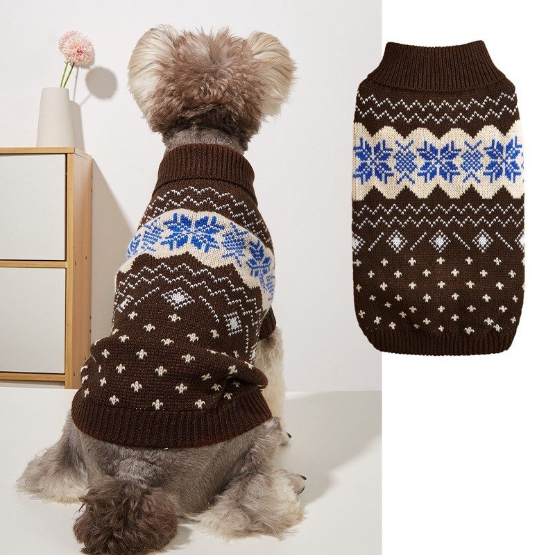 3.Styles and specifications: There are two main styles of this product. One is a snowflake pattern, which has four colors of red, blue, brown and gray respectively. The other is a rhomboid check, available in pink, blue, light gray and dark gray; In addition, the sweater is also available in four sizes XS\S\M\L, from which you can choose any suitable style and size for your beloved dog.