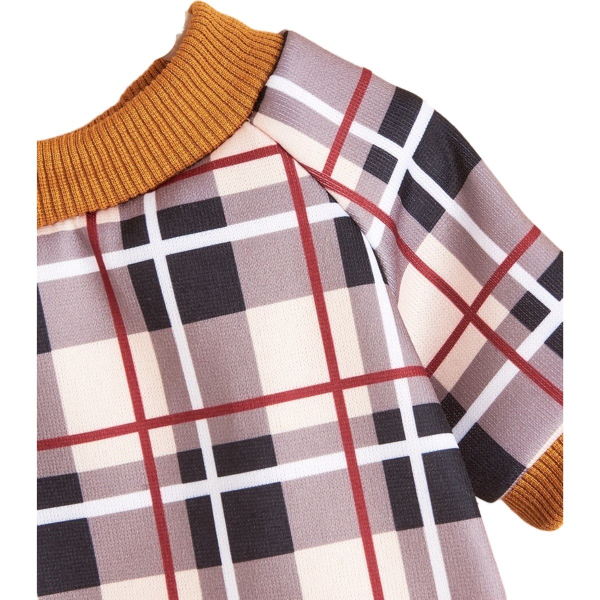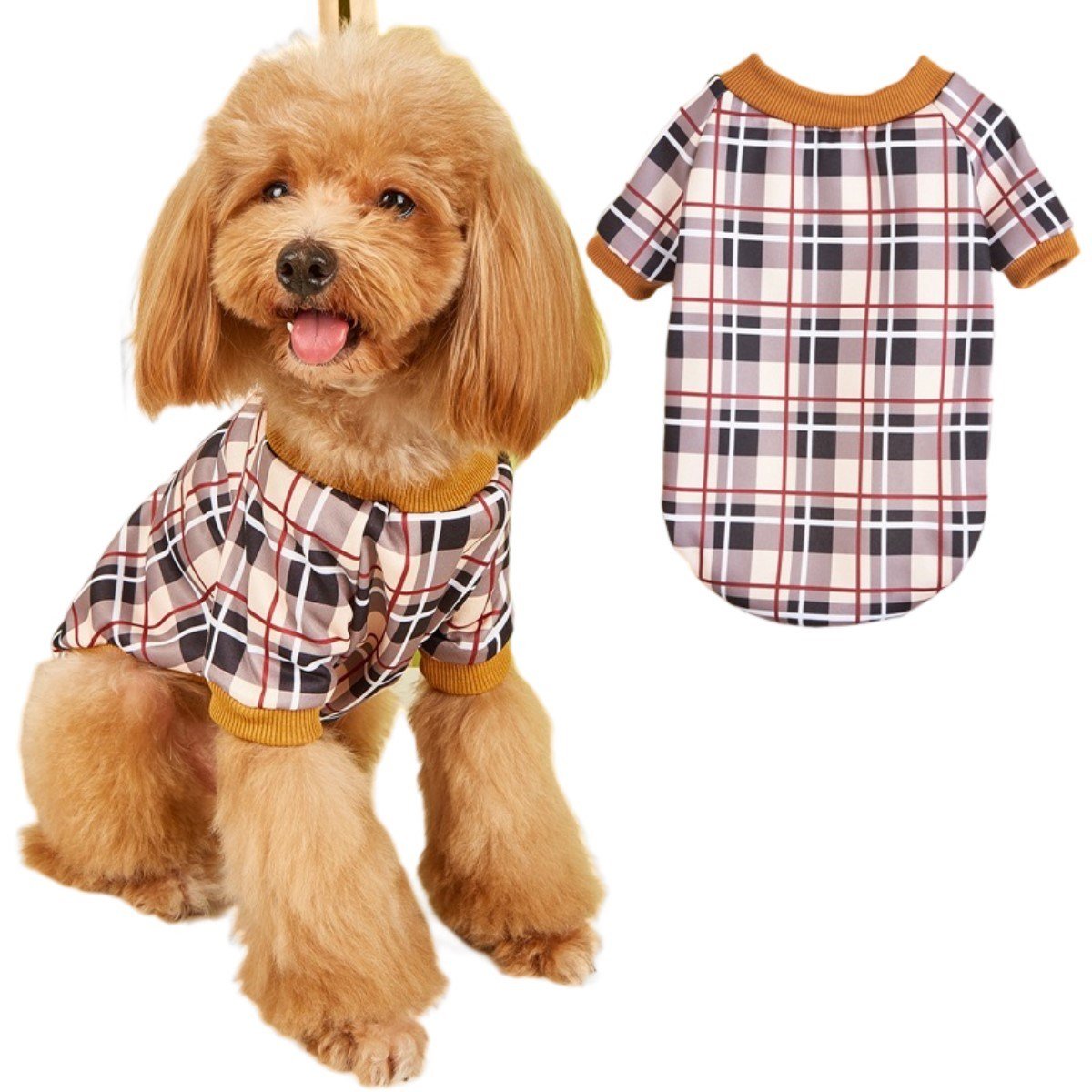 3.Styles and Specifications: There are three main styles of this product. Beige and black check, red and black check, blue and black check; The sweater is also available in four sizes, XS\S\M\L, so you can choose any style and size that suits your dog.